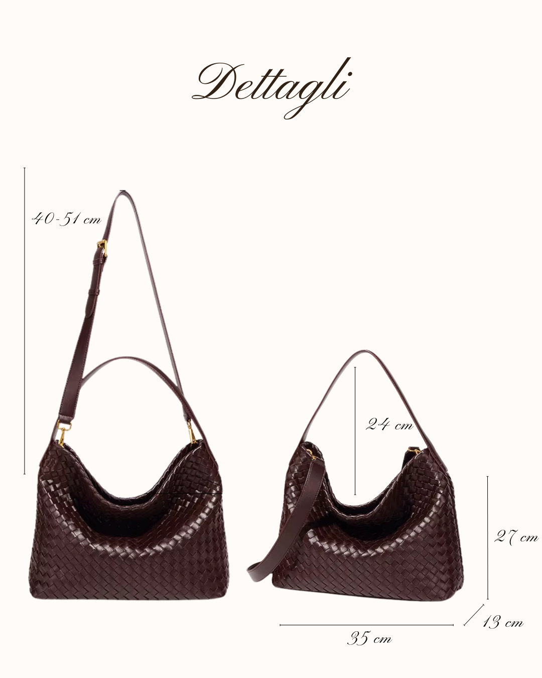 Realizzata in similpelle intrecciata e morbida, mettici dentro i tuoi sogni (e il tuo rossetto preferito) e sei pronta a partire